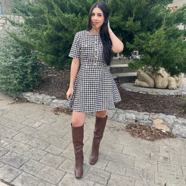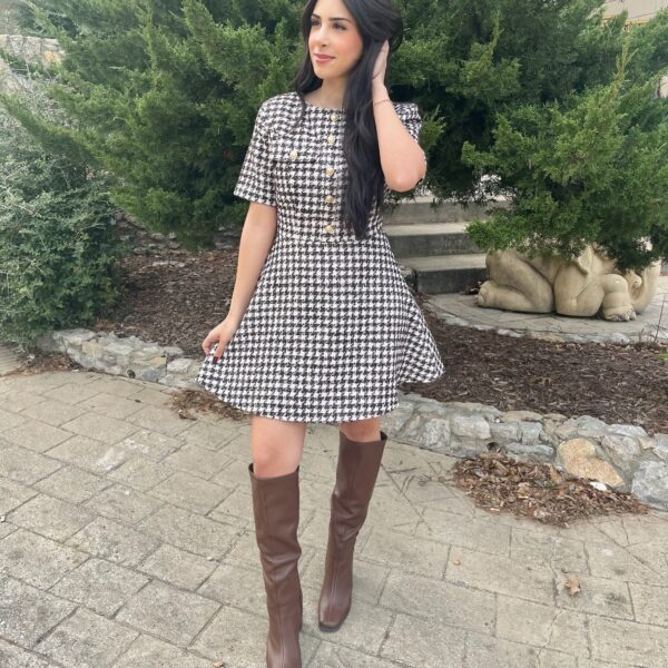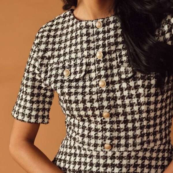 Be the first to review “Classic Charm Tweed Button Detail Knit Dress” Cancel reply