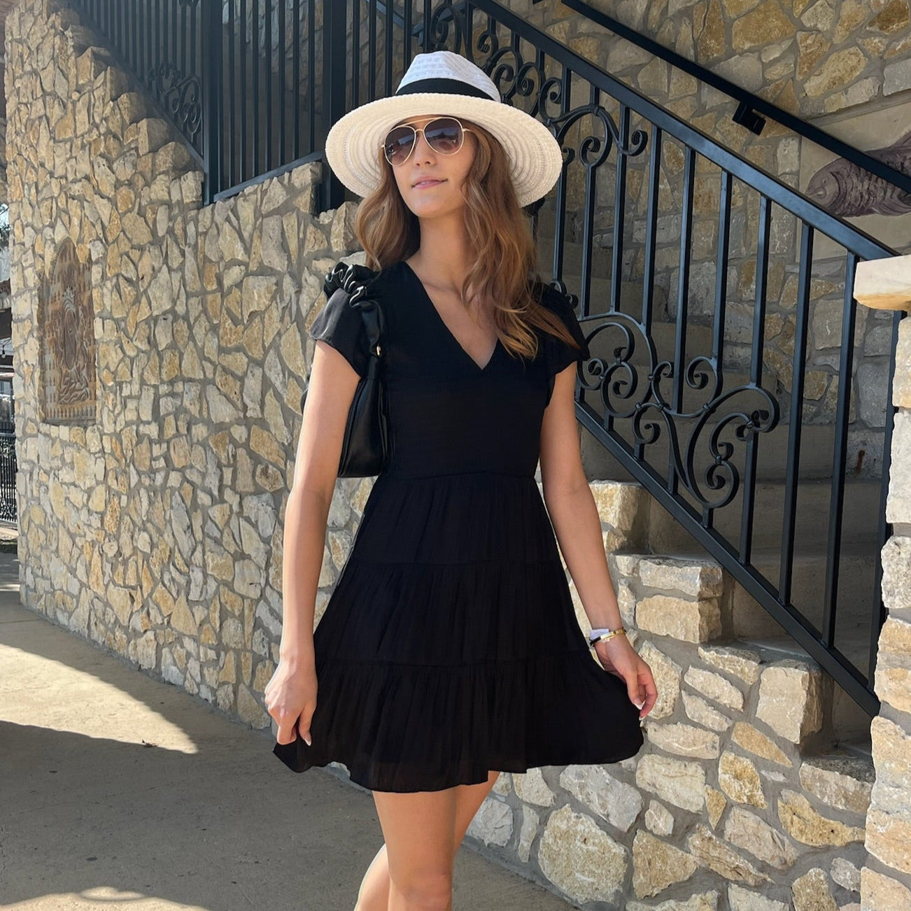 Embody elegance with our On Your Mind Short Sleeve Smocked Tiered Mini Dress, a perfect fusion of luxe texture and fluid design for a truly elevated look!