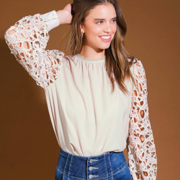 She’s All That Lace Contrast Sleeve Woven Top – FINAL SALE